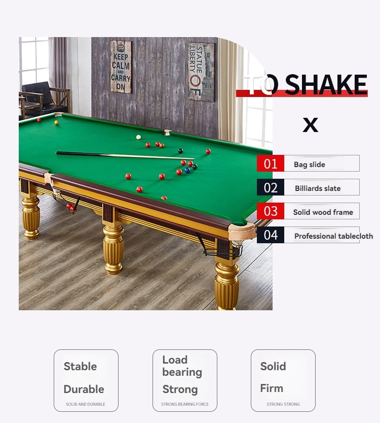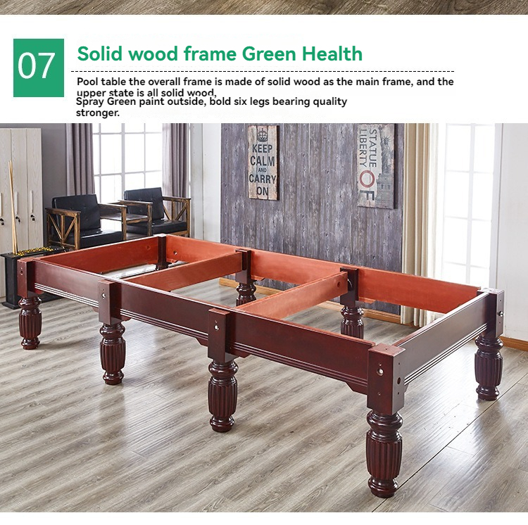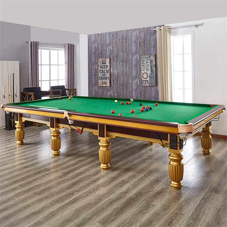 | Material: Solid wood+slate Dimension: 10ft:321*170*85cm 12ft: 385*206*85cm Weight: Table top thickness: 4.2cm Play Space: 8ft: 2300 * 1200 mm (90"*47") 9ft: 2540 * 1270 mm (100"*50") 7ft pool table room size: 397cm x 498cm 8ft pool table room size: 440cm x550cm 9ft pool table room size: 460cm x 590cm 10ft snooker table room size: 438cm x 580cm 12ft snooker room size: 473cm x 652cm Color:red,blue,green/customized | Wooden Package 10ft:1CBM 12ft: 1.2CBM weight: 1150 1pc/3ctns | 10ft:1550 12ft: 1950 |